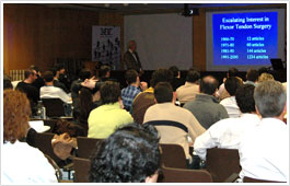 La novedad de este curso ha sido el implante de una prótesis radiocubital distal, que se ha realizado por primera vez en Europa, para ello hemos contado con su inventor y diseñador, el Prof. Scheker, que al termino de la intervención quirúrgica concedió un rueda de prensa a los medios de comunicación por la repercusión que tiene este avance medico, pues debemos recordar que una de las fracturas más frecuentes de un Servicio de Urgencias es la Fractura de Colles, y de estas el 30% se lesionan la articulación radiocubital distal dejando como secuela dolor permanente a la pronosupinación.